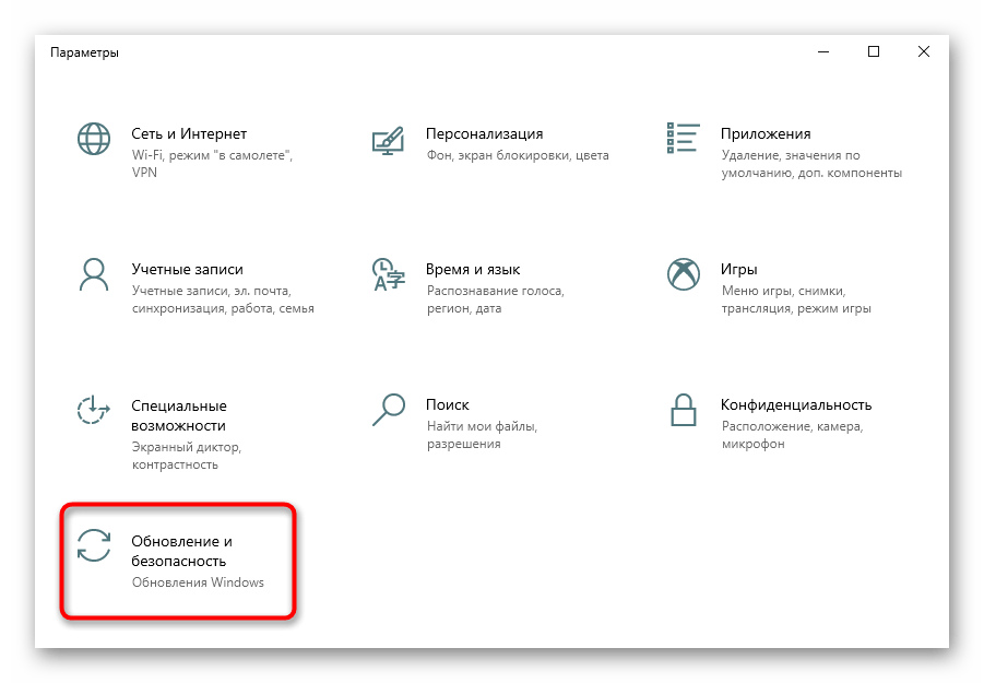 - Перейдите в «Параметры», оттуда — в «Обновление и безопасность».