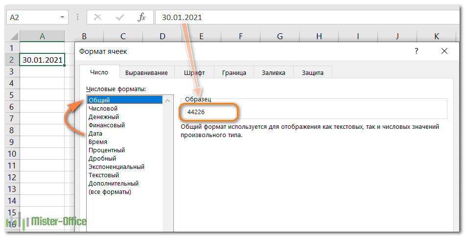 Если вы просто хотите узнать число, стоящее за датой, ничего не меняя в вашей таблице, то запишите число, которое вы видите в поле «Образец», и нажмите “Отмена», чтобы закрыть окно. Если вы хотите заменить дату числом в текущей ячейке, нажмите ОК.