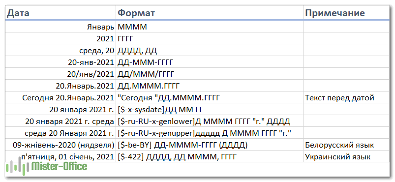 Если вы хотите отображать даты на другом языке, не меняя региональные настройки своего Windows, придётся создать собственный формат и использовать специальный префикс с соответствующим кодом языкового стандарта.