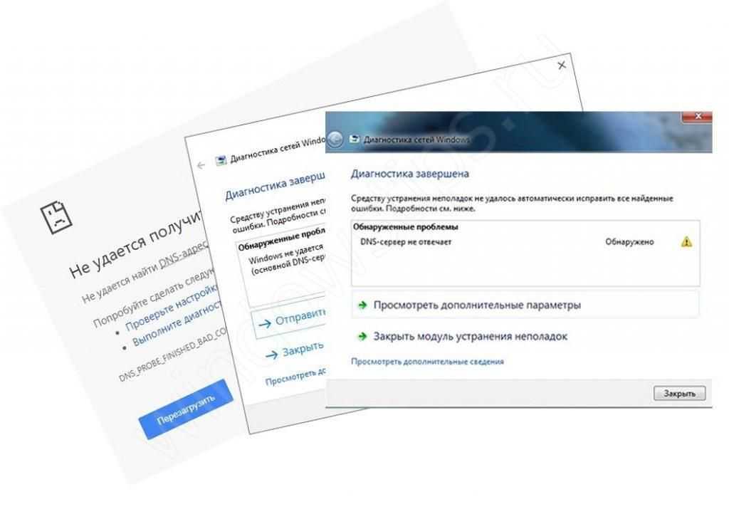 DNS (Domain Name System) – служба доменных серверов, определяет и выполняет соответствие адресов сайта (IP адрес) и доменного имени (например, example.com). В случае сбоя или ошибки, DNS-сервер может некорректно определять запросы с Вашего устройства и в результате невозможно будет подключиться к сайту или нужному сервису. Многие провайдеры используют DHPC – динамическая настройка узла (автоматическое получение IP адреса и других сетевых параметров), поэтому данная ошибка может быть актуальной при повторном получении параметров сети, но в результате ошибки сети, устройства или ресурса DNS сервер не отвечает и необходимые параметры не присваиваются.