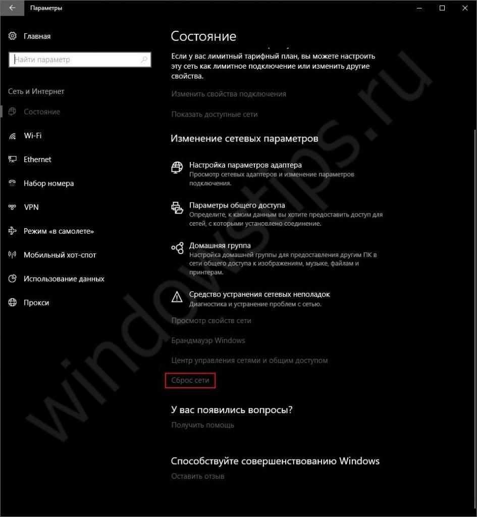 Откройте Параметры Windows (+) – Сеть и Интернет – Состояние и выберите Сброс Сети, после выполнения всех команд нужно перезагрузить ПК.