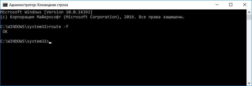Очистка таблицы маршрутизации, сброс протокола TCP/IP