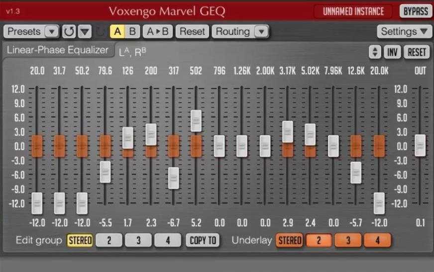 Программа на 16 полос, то есть пространство для творчества в ней действительно много. Ощущение свободы действий только усиливает набор уникальных функций. При всех достоинствах утилита остаётся бесплатной. Одно из достоинств эквалайзера – быстрая персонализация EQ для каждой дорожки или целого трека. Во время обработки каналов применяется задержка на 9 мс. Ещё одна особенность – функция просмотра и сравнения результатов работы разных настроек. Также профессионалам нравится возможность группировать каналы.