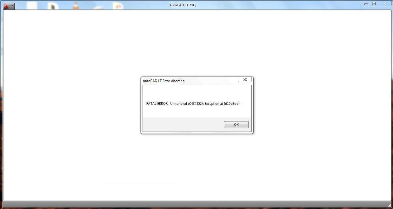 Необратимое исключениеAutoCAD LT 2012 при запуске выдает «Необратимое исключение c0000005 (Access Violation Reading.