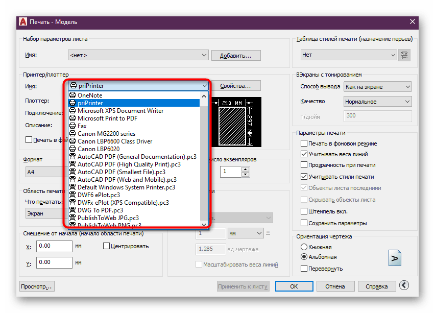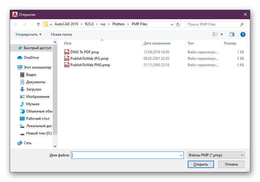 PMP-файл в свойствах принтера определяет нестандартные настройки печати. По умолчанию он не подключен к обычным устройствам, однако мы рекомендуем быстро подсоединить его, проверив эффективность текущего метода. По факту нестандартные параметры не применяются, однако они позволяют отправить чертеж в печать, не получив при этом фатальных ошибок. Вся процедура подключения выглядит так: