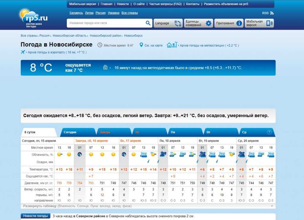 Сайт: https://rp5.ru