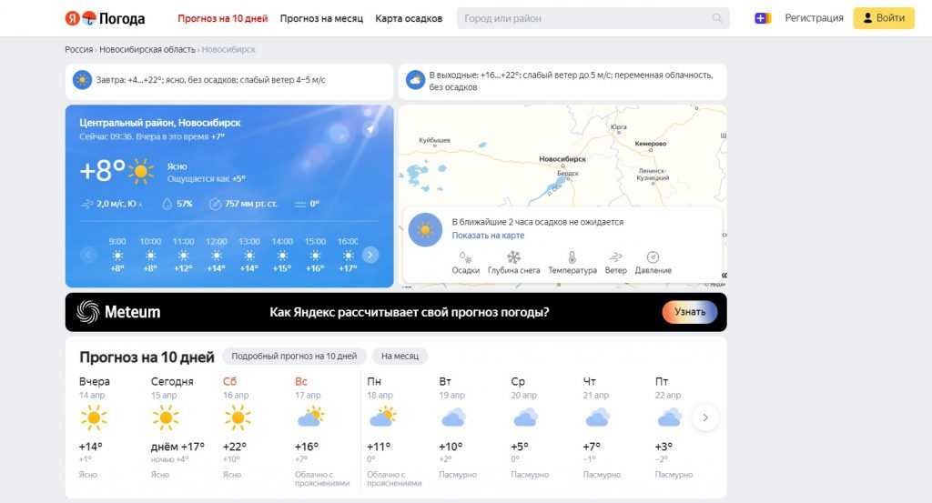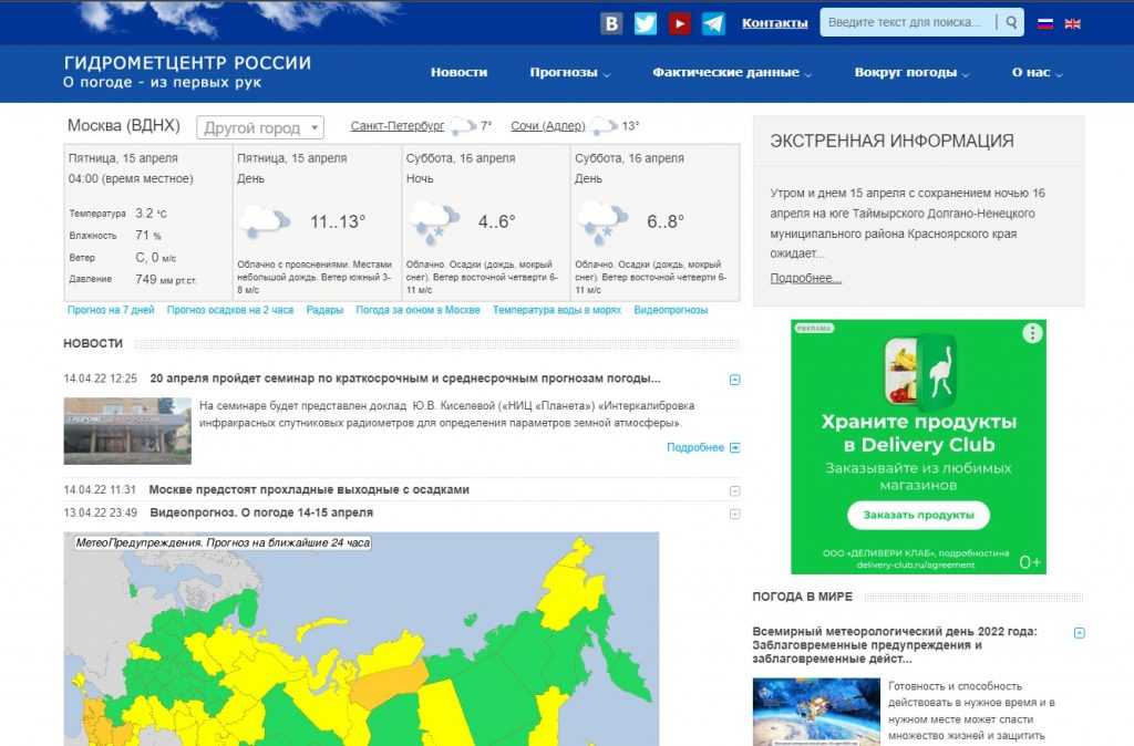 Это один из наиболее точных сайтов, которые сосредоточены для предоставления полной информации о погоде. Данные поступают от Гидрометцентра России.