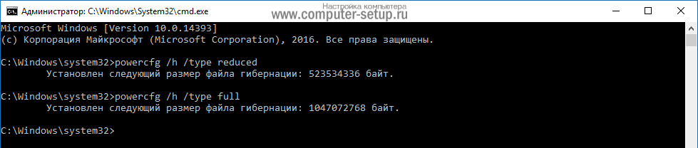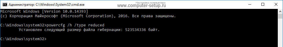 Для этого, в командной строке, запущенной от имени администратора, введите команду: powercfg /h /type reduced и нажмите Enter. Для того, чтобы вернуть все в исходное состояние, в указанной команде вместо «reduced» используйте «full».