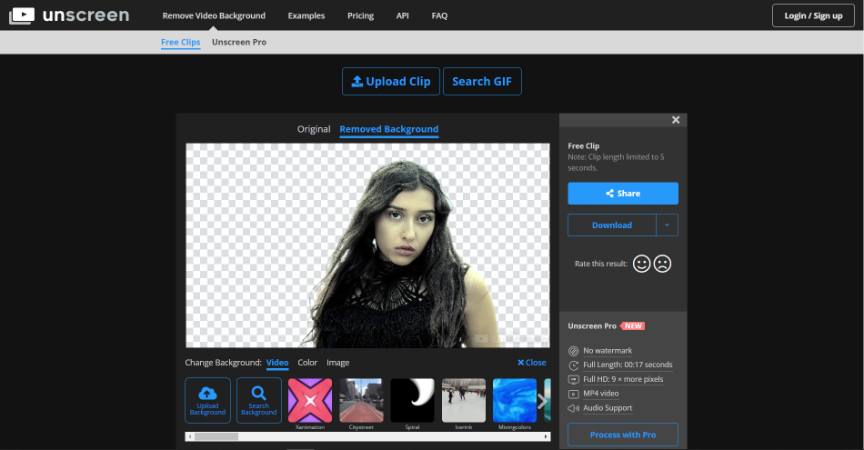 - бесплатные клипы ограничены по времени — только 5 секунд;