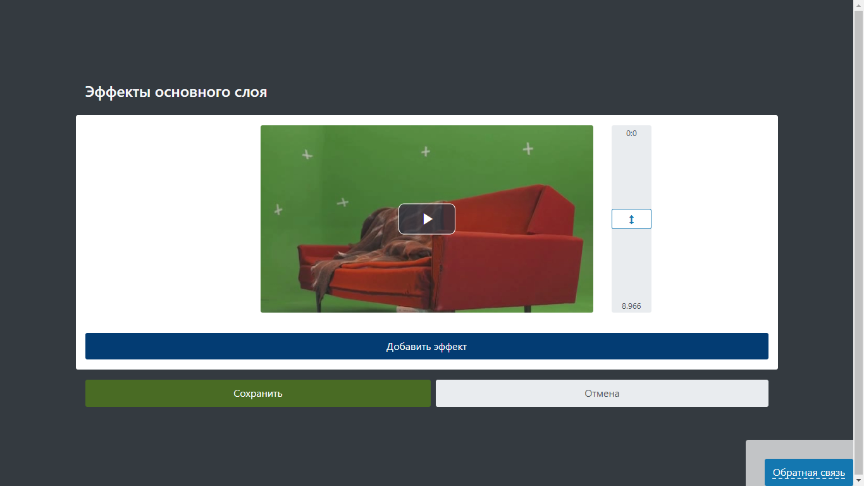 Алгоритм действий:1. Откройте сайт и загрузите ролик. Файл, откуда будете брать замену, добавьте в окно с фоном.2. Выберите «Эффекты». Откроется окно с клипом. Кликните по предложению «Добавить эффекты».