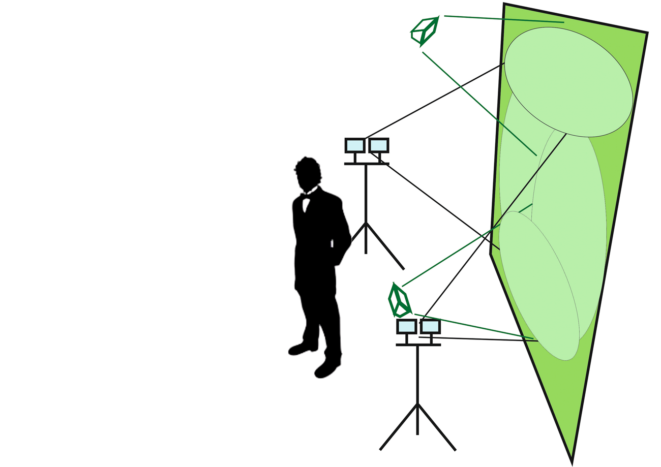 Объект должен быть хорошо освещен и находиться на таком расстоянии, чтобы зеленый фон на камере выглядел размытым. В одежде и аксессуарах спикера не должно быть светоотражающих предметов (очки, часы, украшения и т.д.).