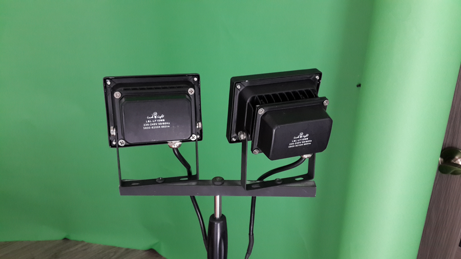 Третий источник света нужно расположить таким образом, чтобы свет от нее падал на полотно хромакея. Таким образом исчезнут остатки теней и затемненные участки на зеленом фоне. Установить лампу нужно с той же стороны, что и первая лампа.