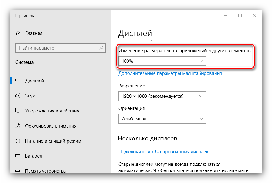 Воспользуемся параметрами Windows 10, чтобы настроить масштаб для всех окон приложений.
