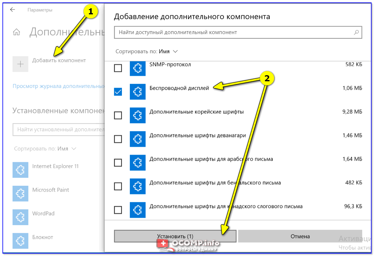 Затем установите дополнительный компонент «Беспроводной дисплей» ().