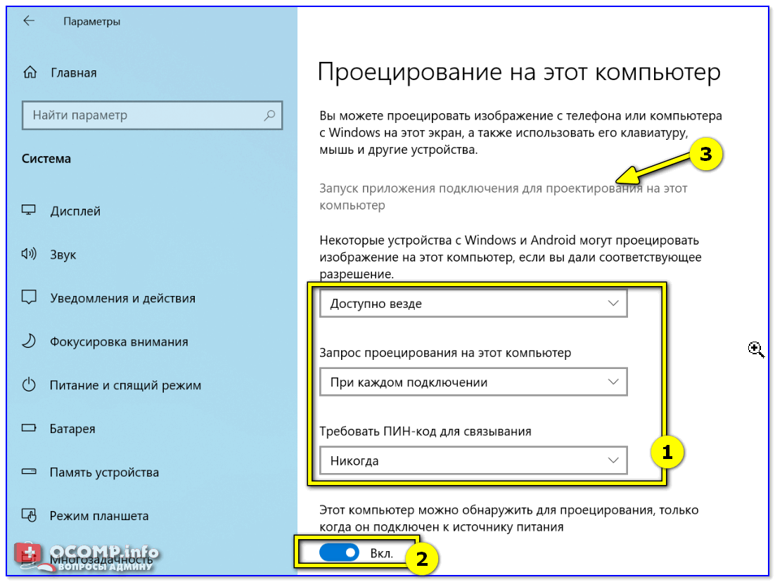 - разумеется, «создать такой второй дисплей» можно как из ноутбука, так и из ПК (главное, чтобы они имели Wi-Fi адаптеры и соответствующие версии Windows 10);