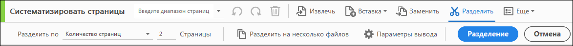 - Если необходимо извлечь все листы документа как несколько отдельных файлов, кликнуть по «Разделить» для вызова меню.