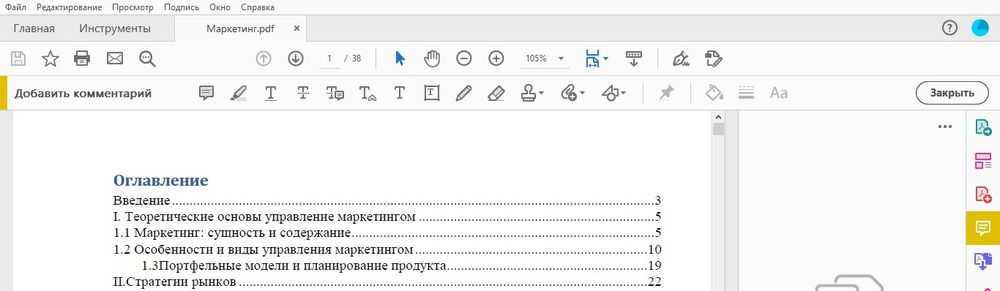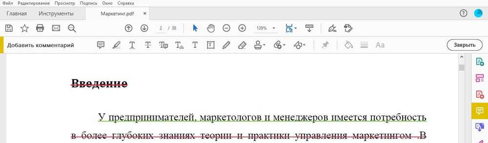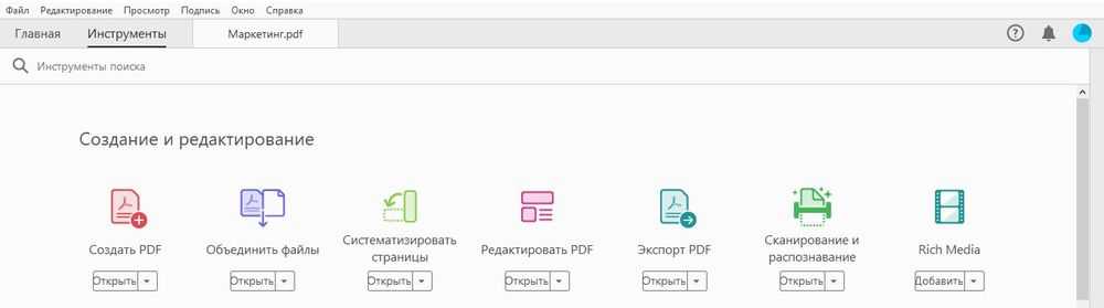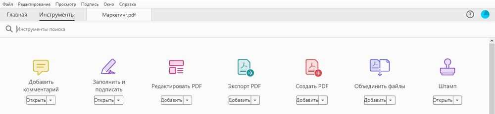 Опция доступна в бесплатной версии программы Adobe Acrobat Reader DC.