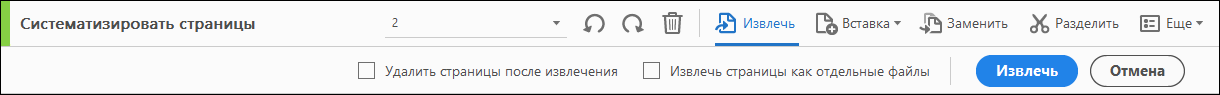 Извлечение представляет собой процесс повторного использования страниц из одного документа PDF в другом документе PDF. Извлеченные страницы содержат не только информацию, но и все поля формы, комментарии и ссылки, связанные с содержанием исходной страницы.
