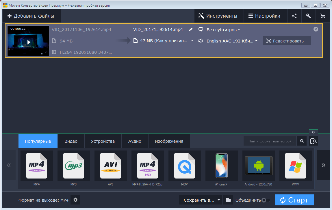 Самый простой способ изменить формат видео — использовать специализированные программы, например, Movavi Video Converter. Для начала скачайте и установите программу на ваш компьютер, это не займет много времени. Когда программа будет установлена можно приступить к конвертации.