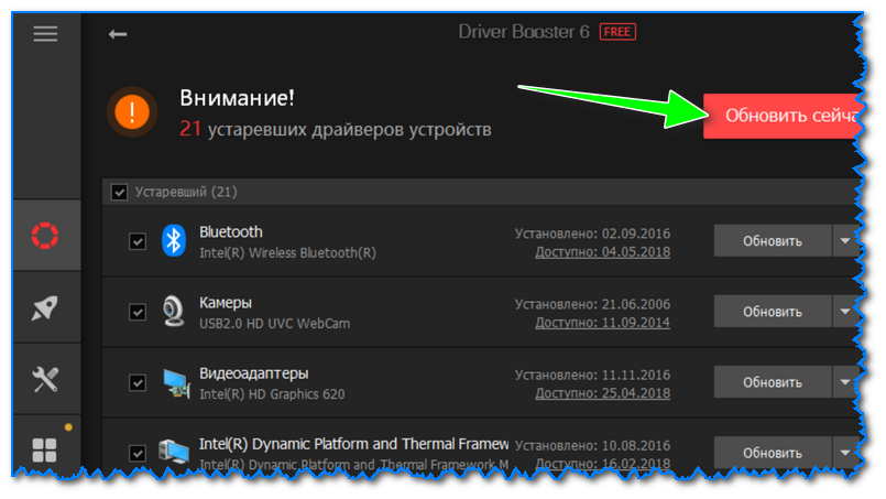 Обновить сейчас — 21 устройство! (обновление драйверов в 1 клик мышкой в Driver Booster 6)