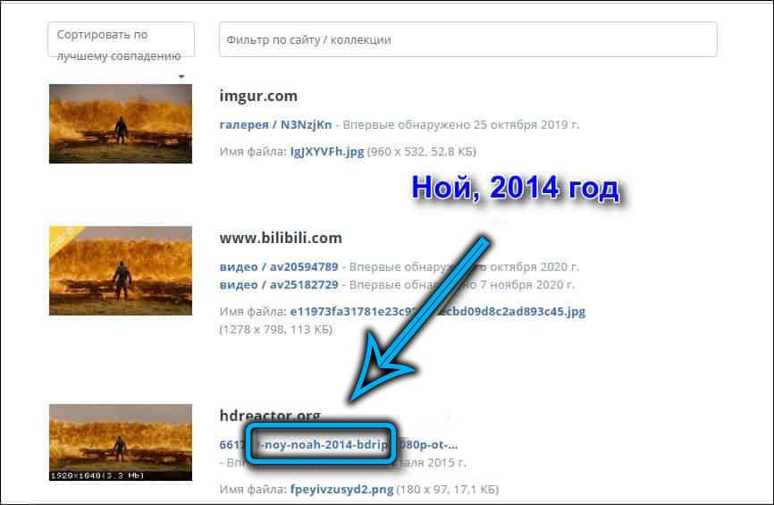 - Если прокрутите страницу вниз, увидите список сайтов, где данное фото опубликовано. Обычно это страницы с описанием искомого фильма.