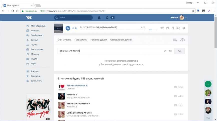 Способ 3 – поиск в аудио- и видеозаписях ВКонтакте