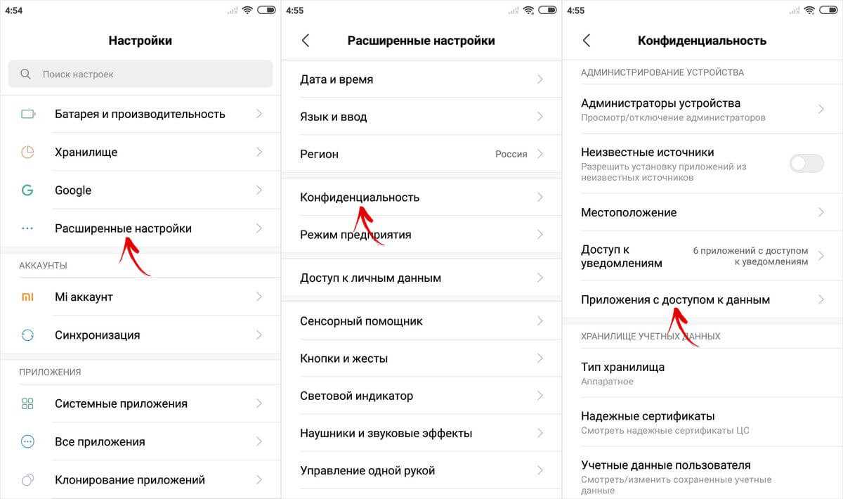 В MIUI пункт называется «Приложения с доступом к данным» и он расположен в разделе «Администрирование устройства» по пути: «Настройки» → «Расширенные настройки» → «Конфиденциальность».