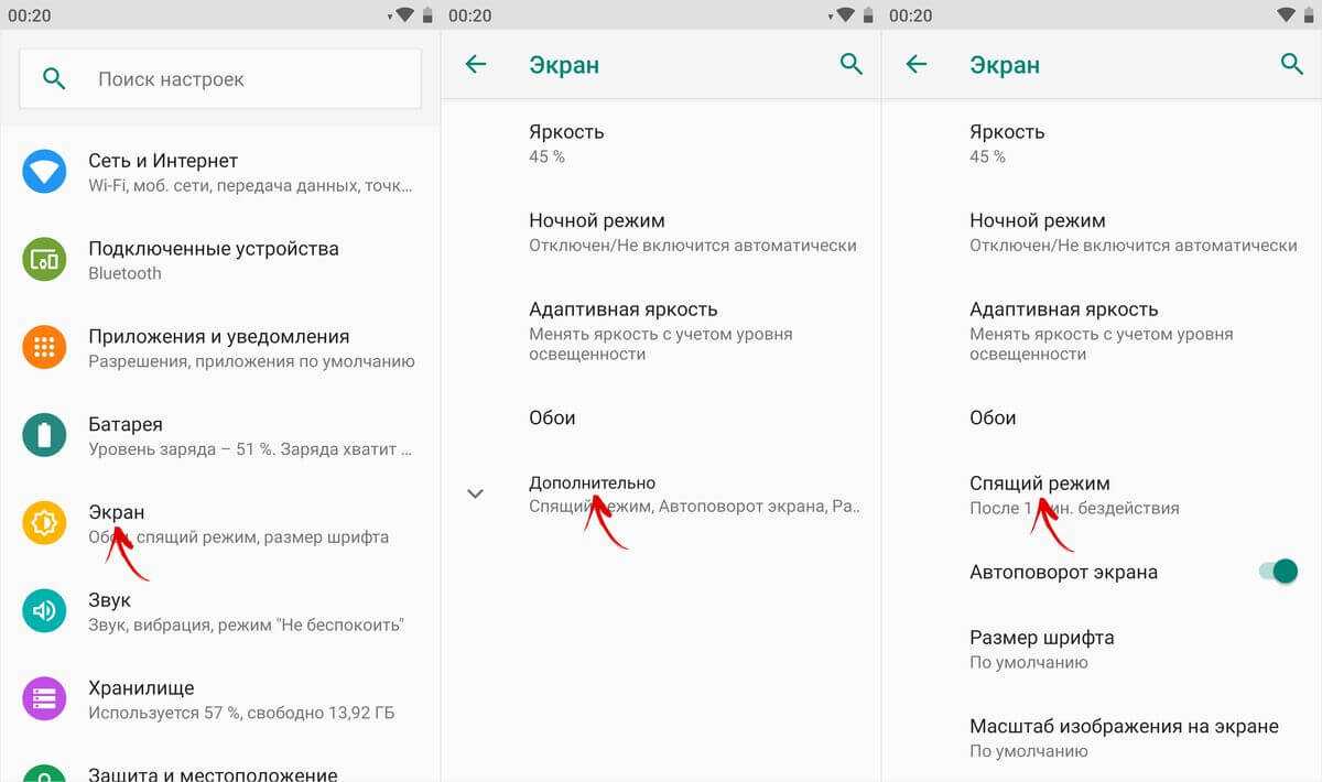 На любом Android-смартфоне тайм-аут экрана можно отрегулировать в настройках. Для этого перейдите в раздел «Экран», на новых версиях Android нажмите «Дополнительно» и откройте «Спящий режим».
