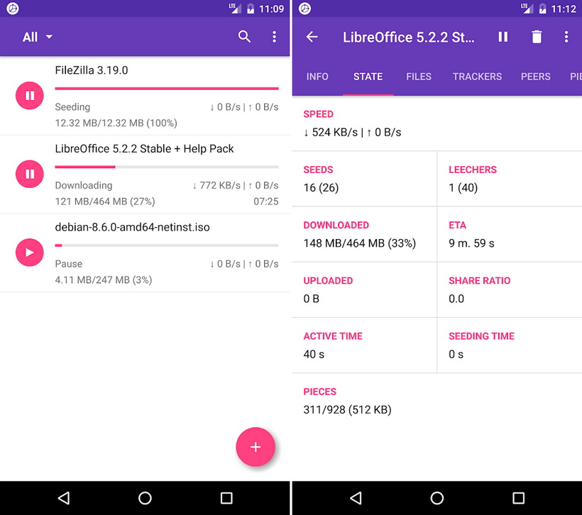Также в LibreTorrent имеется встроенный агрегатор RSS и планировщик загрузок, особо хотелось бы отметить поддержку Top и сетевых технологий DHT, PeX, LSD, UPnP, NAT-PMP, µTP, прокси для трекеров и пиров. При этом торрент-загрузчик распространяется по лицензии GPLv3 и не содержит встроенной рекламы.