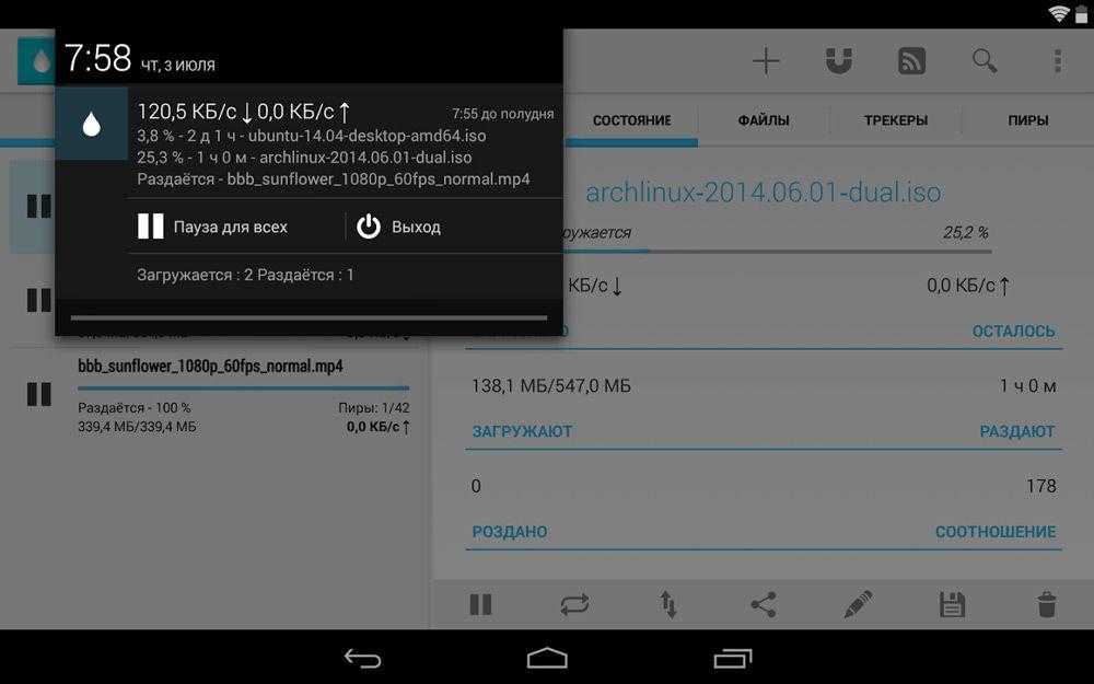 - Нет лимитов по скорости загрузки и отдачи торрентов для планшета