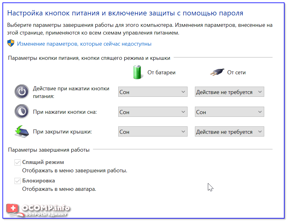 Если вы неопытный юзер, просто зайдите в «Панель управления» в раздел для электропитания и там установите одно из четырёх действий для режима питания от батареи и от электросети (когда подключена зарядка). Для более смелых юзеров есть вариант использования «Командной строки».