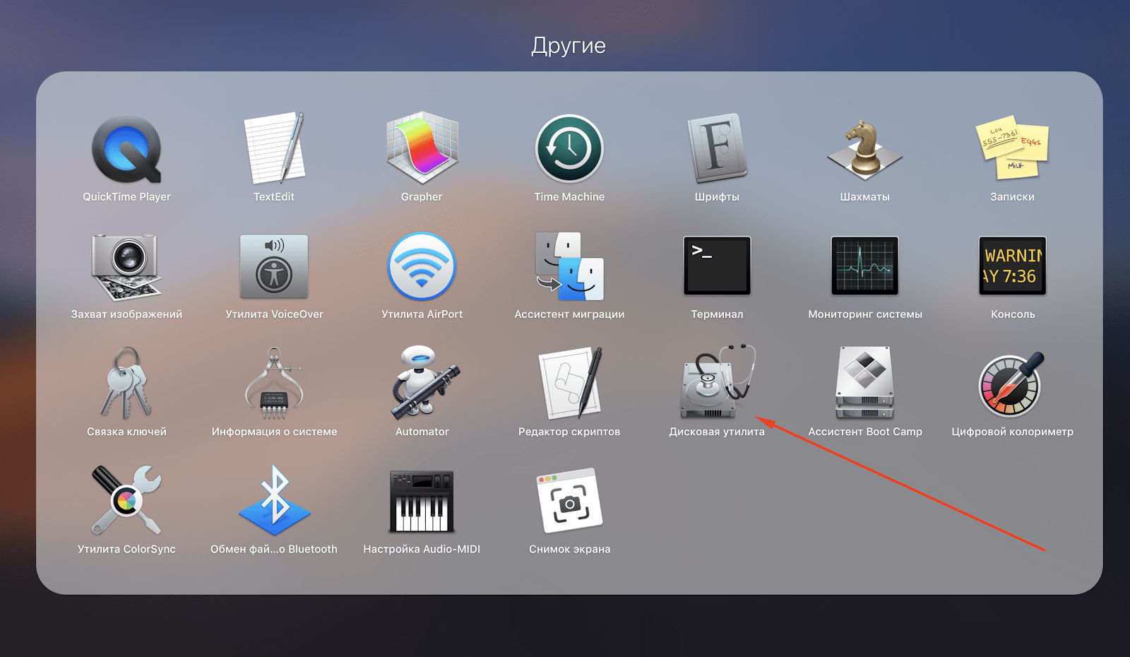 В открывшемся окне есть папка «Другое», где собственно и находится дисковая утилита.
