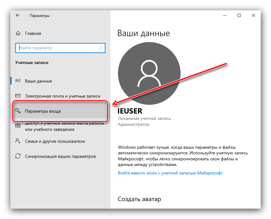 - Перейдите в Пуск > Параметры > Учетные записи > Параметры входа.