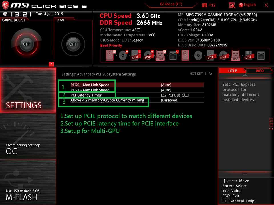 Настройки протокола PCIe, латентности, многопроцессорной графической конфигурации.