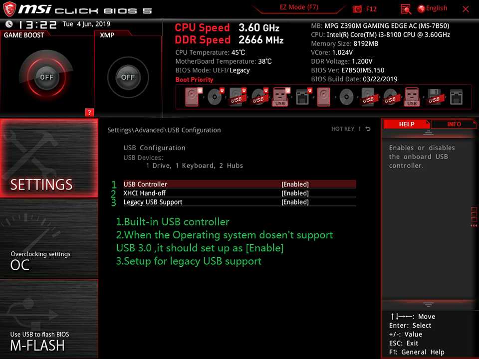 Закладка USB Configuration, включение USB 3.0, XHCI, EHCI и т.д.