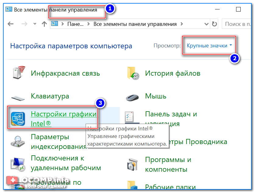 Сначала необходимо открыть 👉 панель управления Windows и переключить отображение в режим «Крупные значки» . Среди многообразия ссылок на различные параметры — должна быть ссылочка и на видеодрайвер (разве за исключением последних драйверов от Intel, они в панель управления перестали добавлять значки. ).