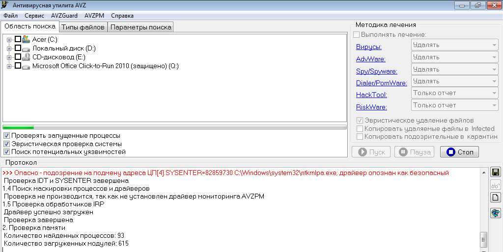 Вирусы могут удалять системные файлы, что приводит к сбоям в работе операционной системы. Чтобы просканировать Windows, необходимо воспользоваться утилитой AVZ: