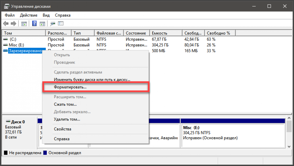 - отформатировать или удалить раздел (удобно, если данные на диске не нужны).