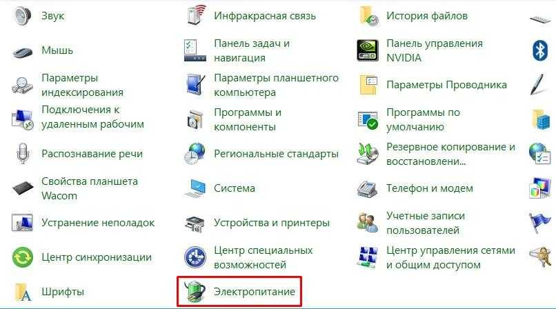 В меню выберем пункт «Панель управления». В панели управления зайдем в раздел «Электропитание».