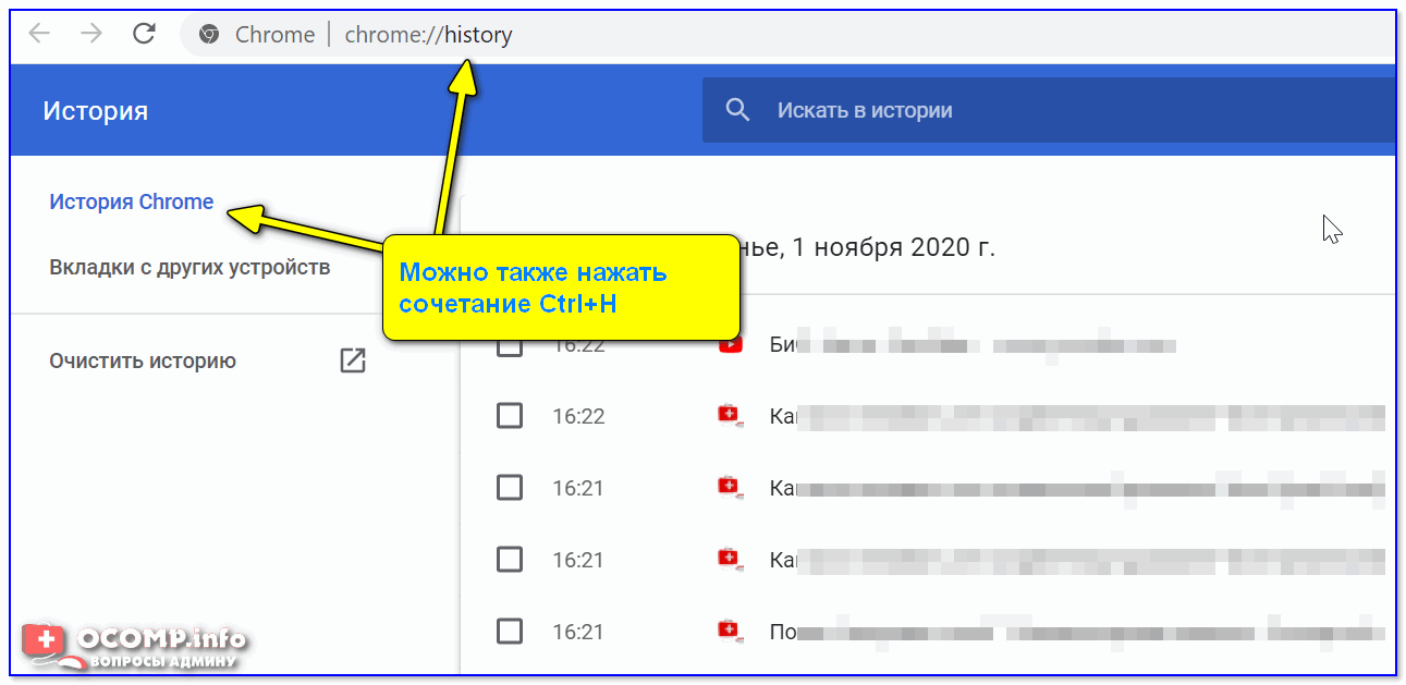 Можно также нажать сочетание Ctrl+H для просмотра истории