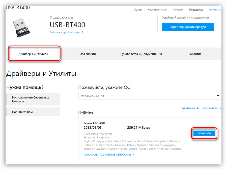 Актуальную версию драйверов для блютуз адаптера можно скачать на сайте производителя. Также они всегда есть на установочном диске, который поставляется в комплекте с лэптопом. Учитывайте, что для разных модификаций девайсов внутри одного модельного ряда могут потребоваться разные драйвера, так как в них используются разные адаптеры.