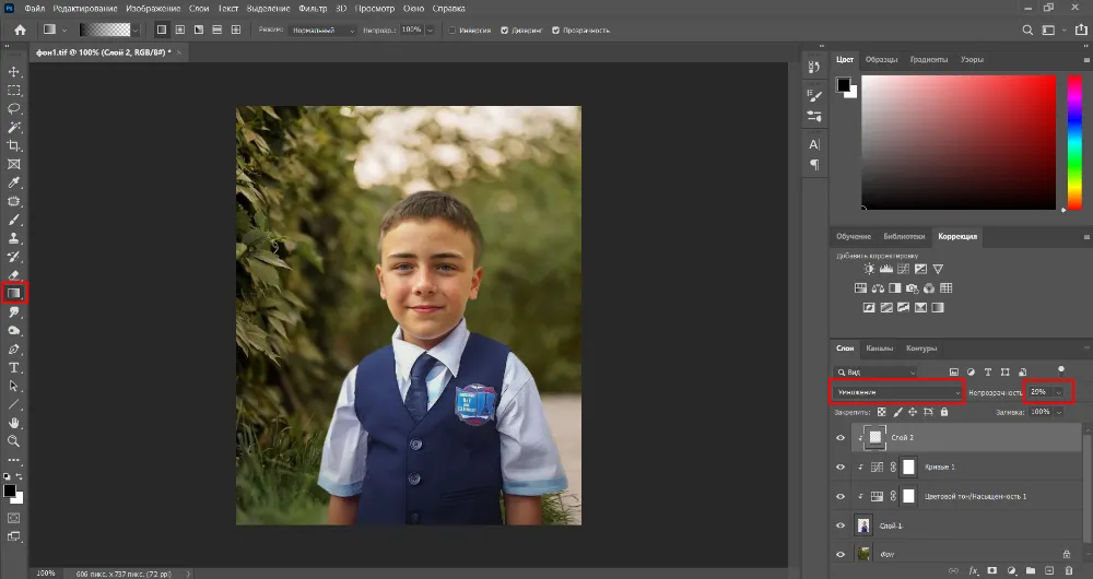 Добавьте фотографию, объекты которой хотите разместить на новом фоне