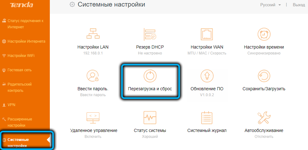 Перезагрузка Tenda AC1200, сброс до заводских настроек