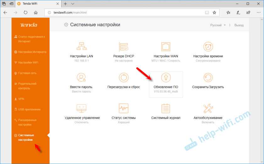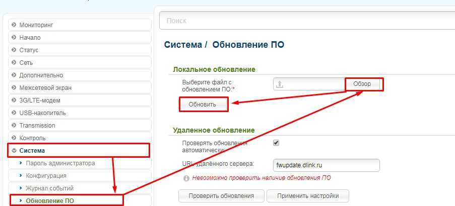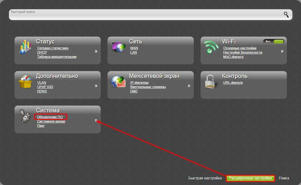 Обновить прошивку маршрутизатора можно в разделе «Системные настройки» — «Обновление ПО».