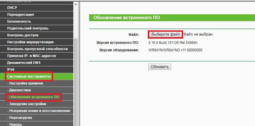 Для старых моделей заходим «Системные инструменты» – «Обновление встроенного ПО» – «Выберите файл». В самом конце жмём «Обновить».
