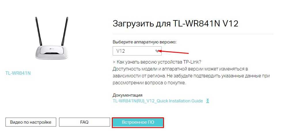 Выбираем аппаратную версию и жмём на кнопку «Встроенное ПО».
