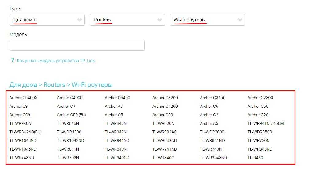 Выбираем: «Для дома» – «Routers» – «Wi-Fi роутеры». Теперь можете вписать модель роутера, но проще выбрать его из списка снизу.
