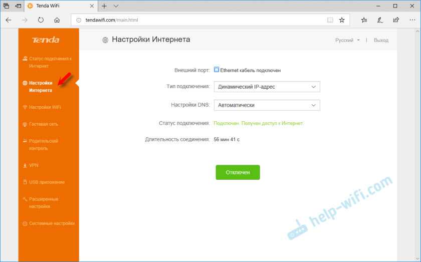 Чтобы открыть веб-интерфейс (страницу с настройками), нужно в браузере перейти по адресу tendawifi.com, или 192.168.0.1. Подробнее в статье как зайти в настройки роутера Tenda. Если страница с настройками не откроется, то смотрите статью: не заходит в настройки роутера на 192.168.0.1 или 192.168.1.1.