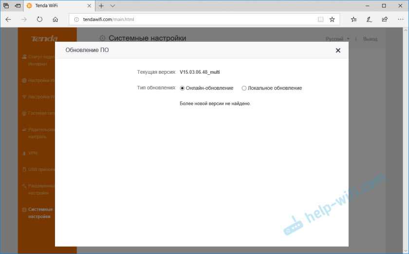 Как только вы откроете этот раздел, роутер сразу проверит, нет ли новой версии прошивки. Если есть – предложит ее установить. Можно выполнить обновление вручную (локальное обновление). Скачать прошивку с сайта Tenda и установить ее. Например, когда роутер не подключен к интернету.