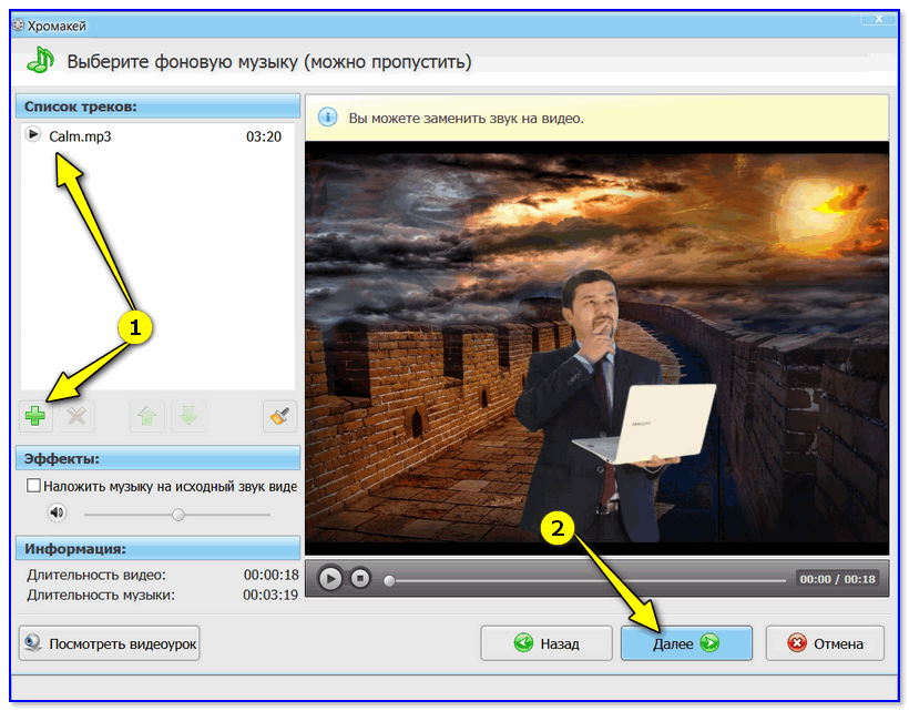 Алгоритм действий:1. Запустите приложение и добавьте в него клипы с хромакеем и будущим задним планом.